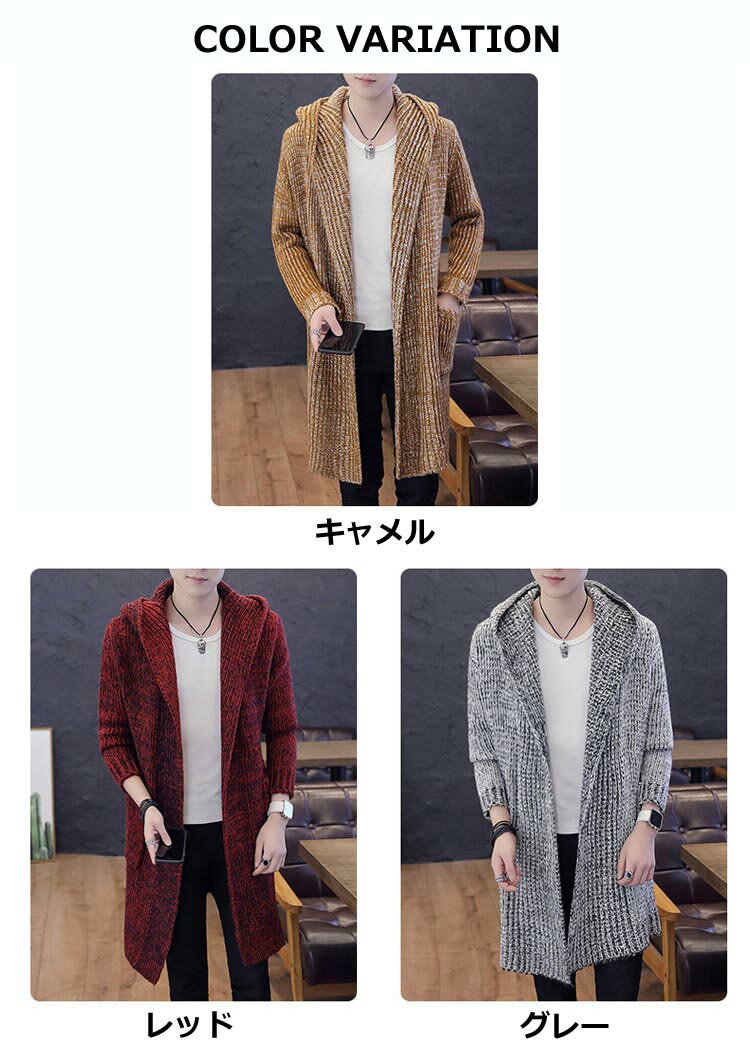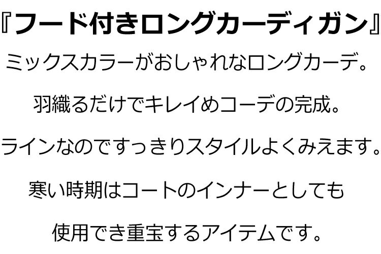 『フード付きロングカーディガン』 ミックスカラーがおしゃれなロングカーデ。