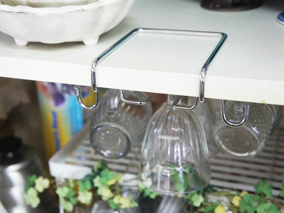 センター(真ん中)にワイングラスなどが掛けられ 左右にマグカップなどのコップを合計8個掛けられます。